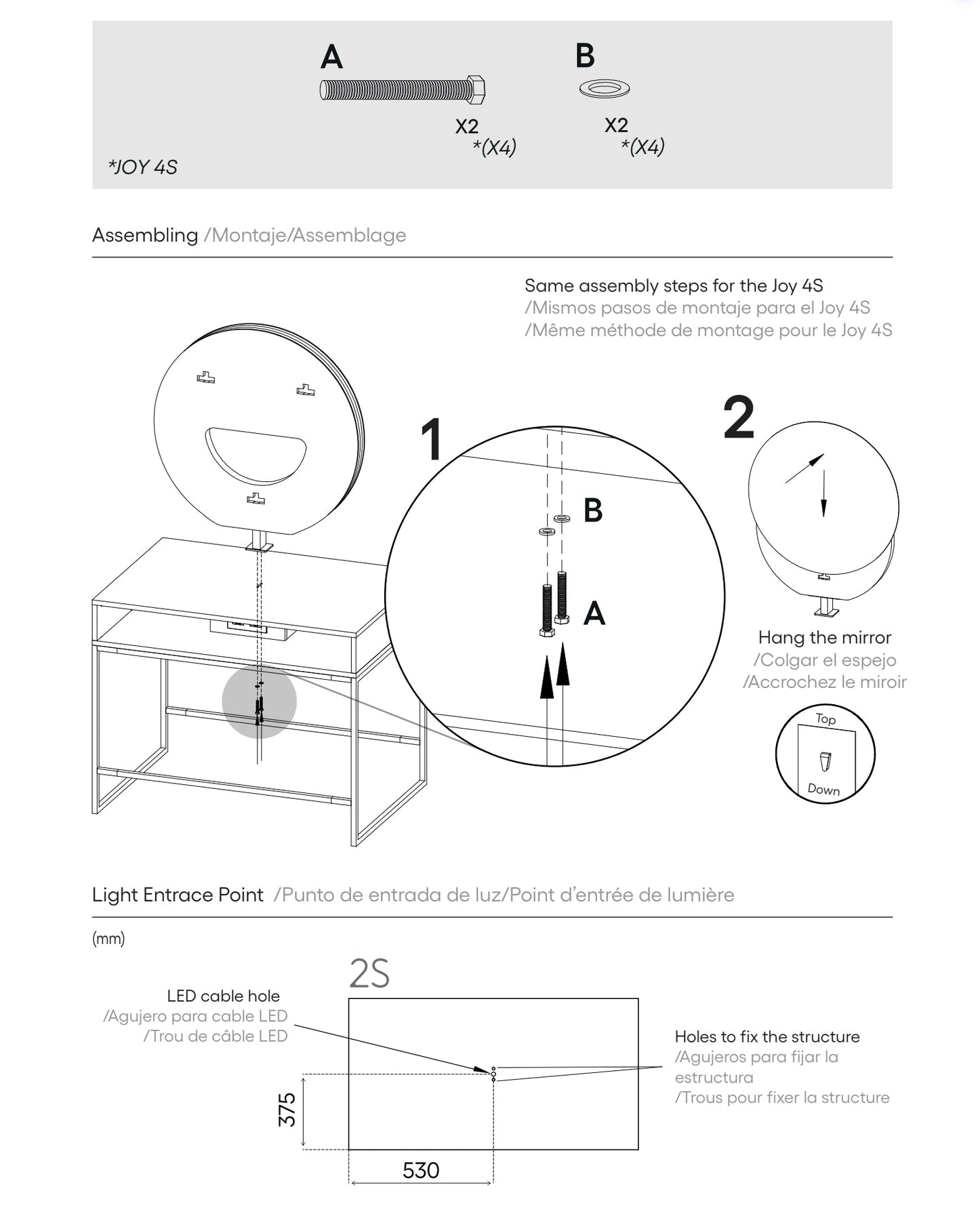 Pahi runder Doppelspiegel Joy 2S - ohne Tisch