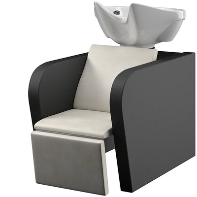 Eddie Relax ist unser Friseurwaschtisch mit gepolstertem und mit Skai bezogenem Gestell, weißem, kippbarem Waschbecken, hinterem Shampoohalter, verstellbarer elektrischer Beinstütze und Skai-Polsterung. Seine geschwungenen Linien machen ihn zu einem vielseitigen Designmöbel, das sich an verschiedene Stile anpassen lässt, während das tiefe Becken ihn zu einem äußerst praktischen Arbeitsplatz macht.